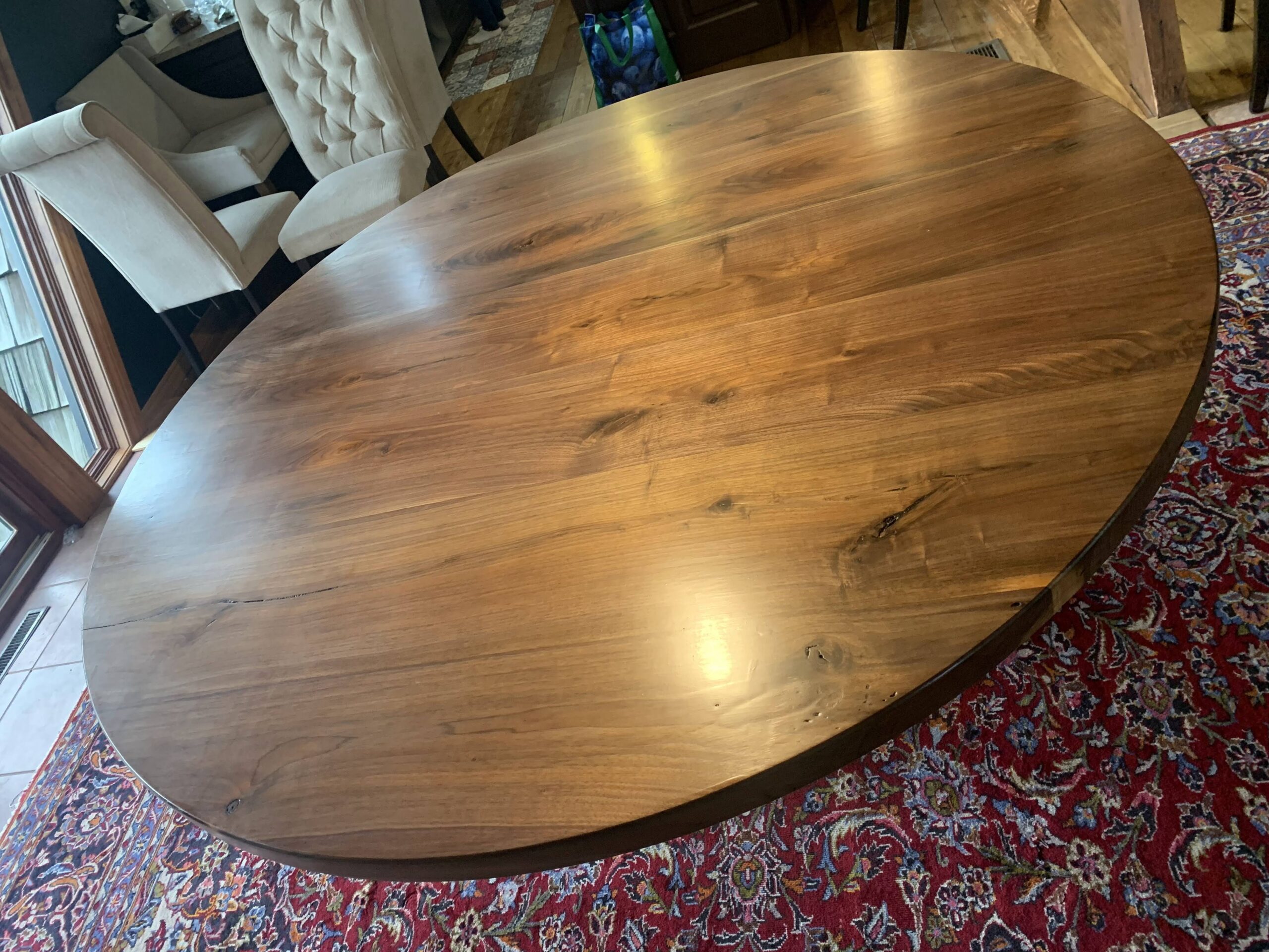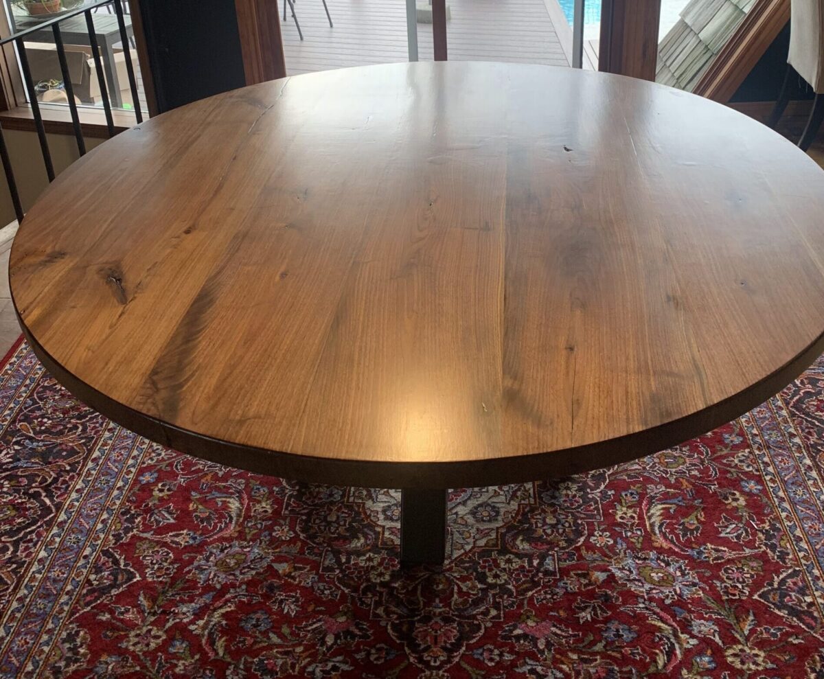 To make the table a circle I used a router mounted on a piece of angle iron and made multiple passes untill I got all the way through. The finish I used for it was a semi-gloss finish the customer didn’t was a high gloss finish. For the legs, I used semi-gloss matt black paint that I painted on using my air gun.